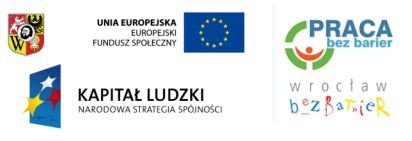 "Praca bez barier" jest projektem realizowanym w ramach Programu Operacyjnego Kapitał Ludzki, Priorytet VI. Rynek pracy otwarty dla wszystkich, Podziałanie 6.1.1 Wsparcie osób pozostających bez zatrudnienia na regionalnym rynku pracy. Projekt jest współfinansowany ze środków Unii Europejskiej w ramach Europejskiego Funduszu Społecznego.