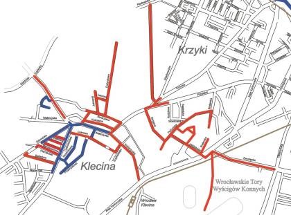 Braterska, Jeździecka , Jeździecka-boczna , nowo projektowana ulica w rejonie ul. Skarbowców łącząca ul. Racławicką z ul. Przyjaźni, Partynicka, Skrajna. - Osiedle Klecina: