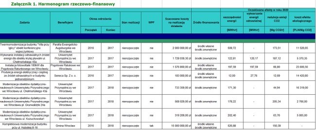 Lista zadań zgłoszonych do Planu Gospodarki Niskoemisyjnej dla Wrocławia w 2016 r. (stan na dzień 10.05.2016 r.)