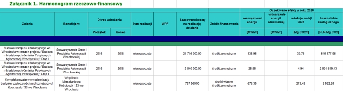 Lista zadań zgłoszonych do Planu Gospodarki Niskoemisyjnej dla Wrocławia w 2016 r. (stan na dzień 08.07.2016 r.)