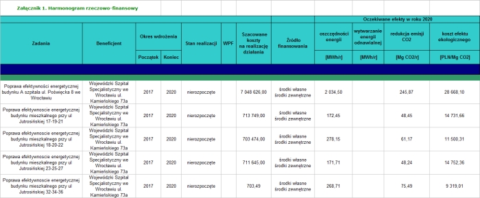 Lista zadań zgłoszonych do Planu Gospodarki Niskoemisyjnej dla Wrocławia w 2016 r. (stan na dzień 01.09.2016 r.)