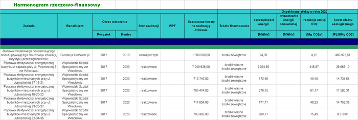 Lista zadań zgłoszonych do Planu Gospodarki Niskoemisyjnej dla Wrocławia w 2016 r. (stan na dzień 01.10.2016 r.)