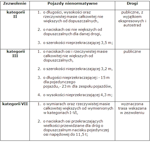 Na mocy ustawy Prawo o ruchu drogowym ruch pojazdów nienormatywnych jest dozwolony pod warunkiem uzyskania zezwolenia na przejazd pojazdu nienormatywnego odpowiedniej kategorii, wydanego w drodze decyzji administracyjnej przez właściwy organ.