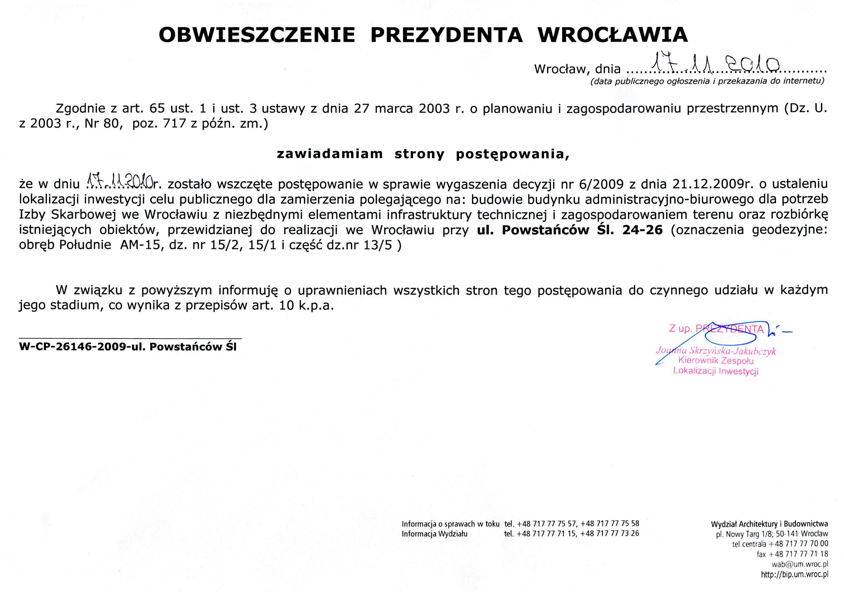 Obwieszczenie W-CP-26146-2009,2010-11-17