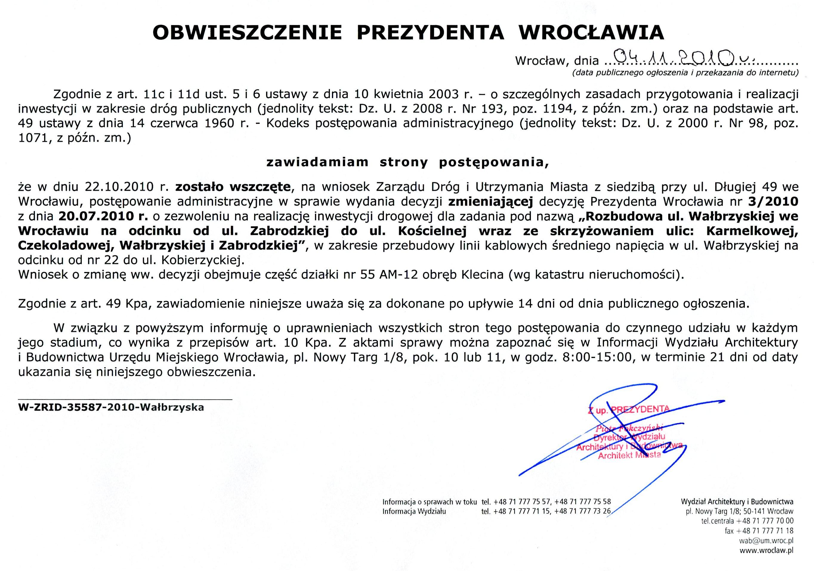 Wersja strony w formacie XML| Znak sprawy | W-ZRID-35587-2010 |