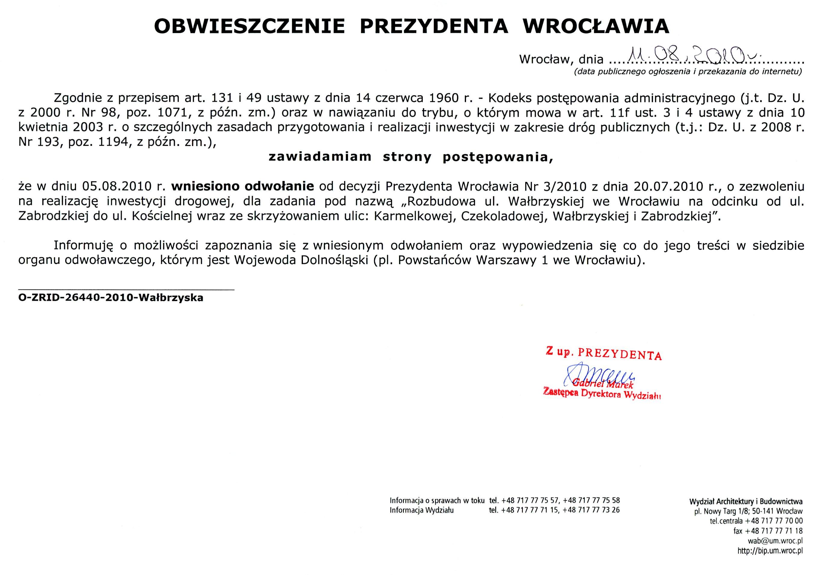 Wersja strony w formacie XML| Znak sprawy | D-ZRID-26440-2010 |