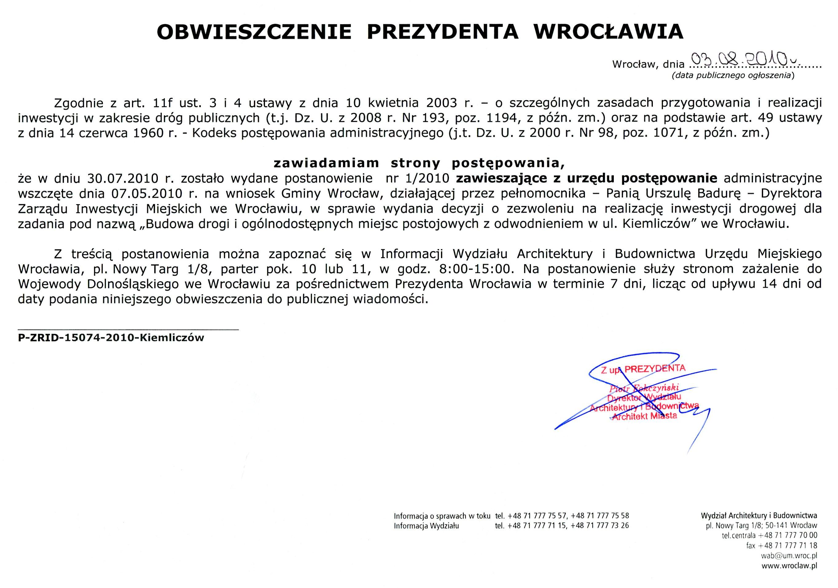 Obwieszczenie D-ZRID-15074-2010