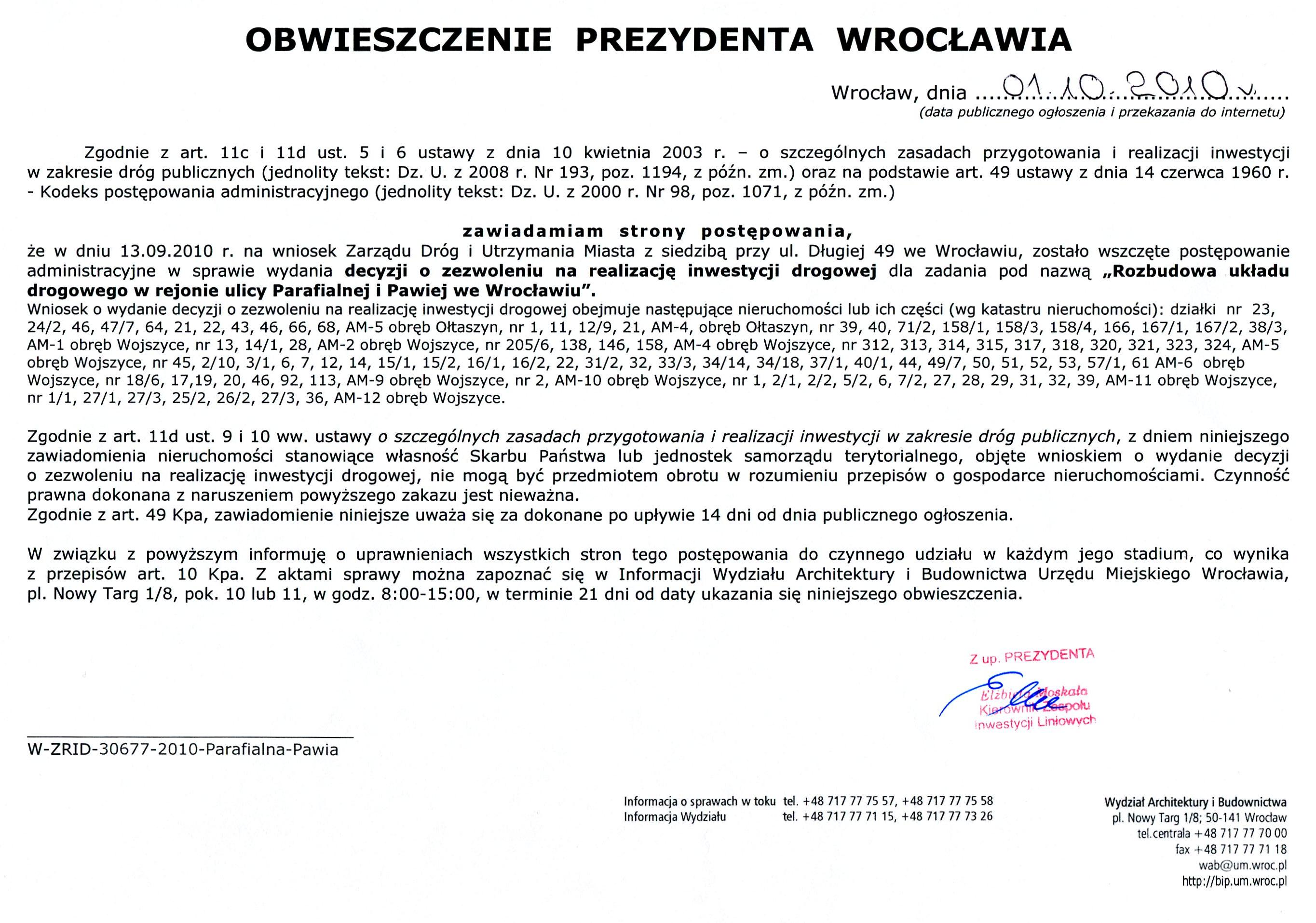 Obwieszczenie W-ZRID-30677-2010