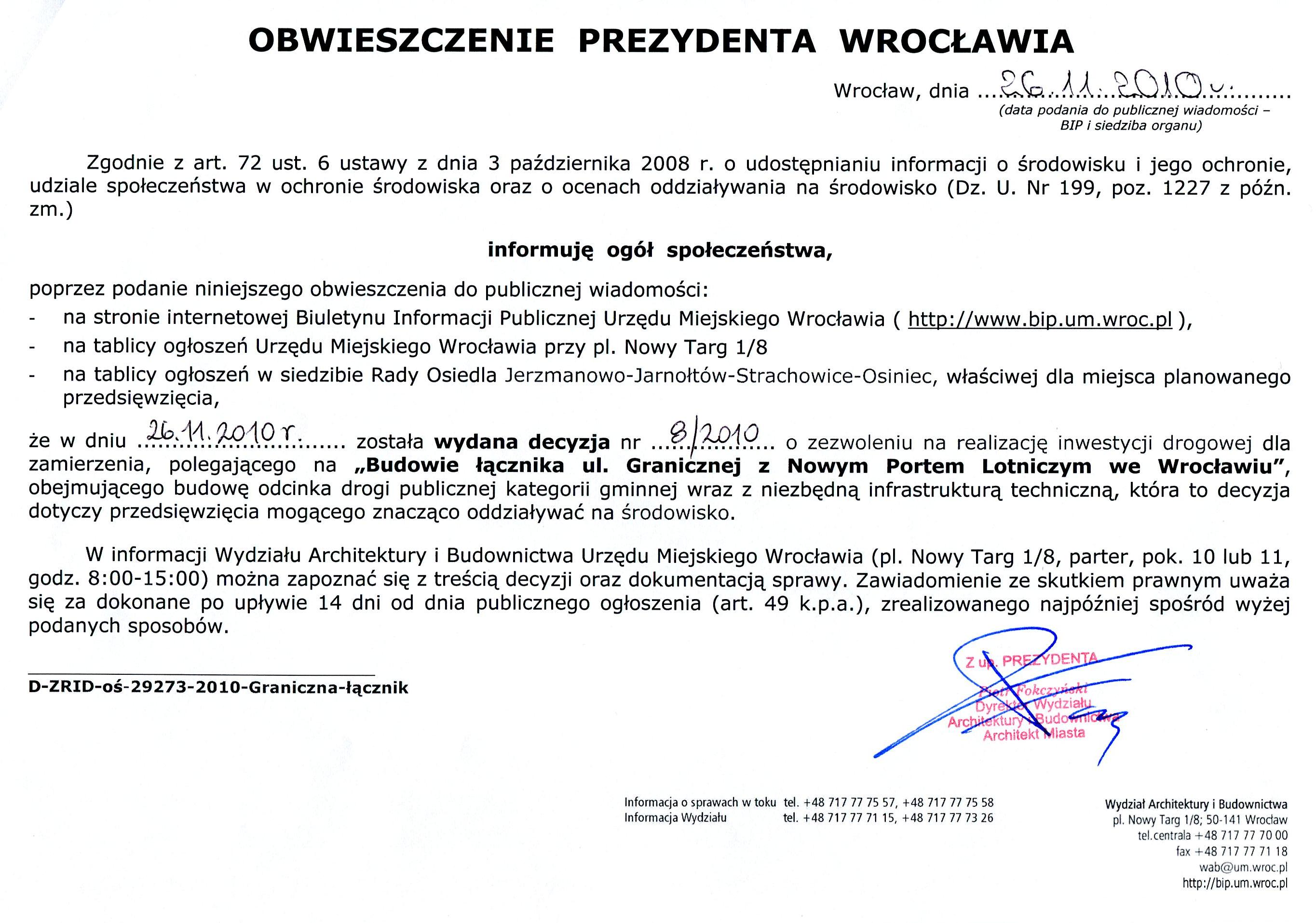 Obwieszczenie D-ZRID-OS-29273-2010,2010-11-26