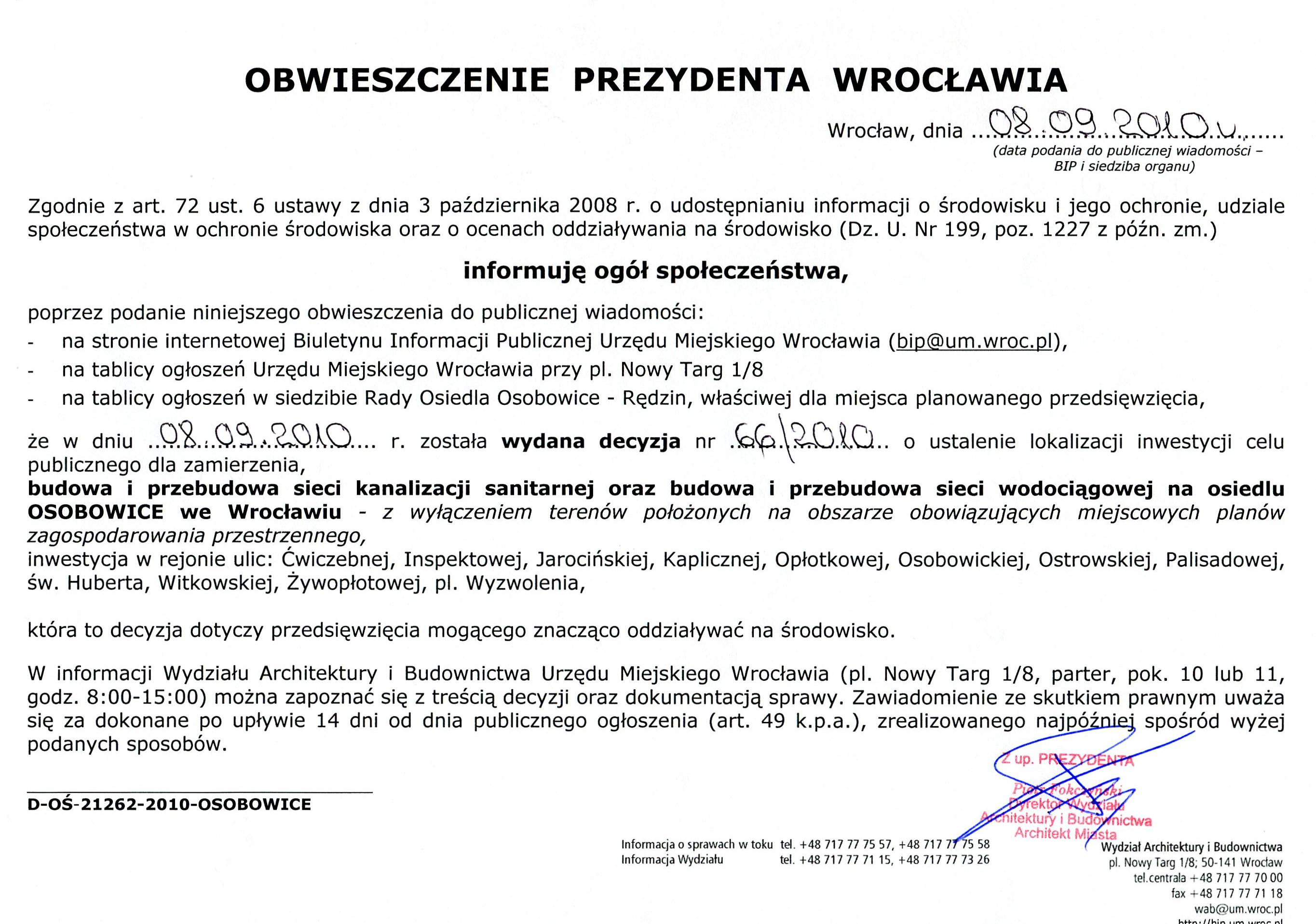 Obwieszczenie D-CP-OS-21262-2010, 2010-09-08